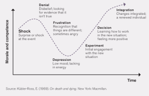 - Acceptance – Coming to terms with the change, adapting, and beginning to envision growth.